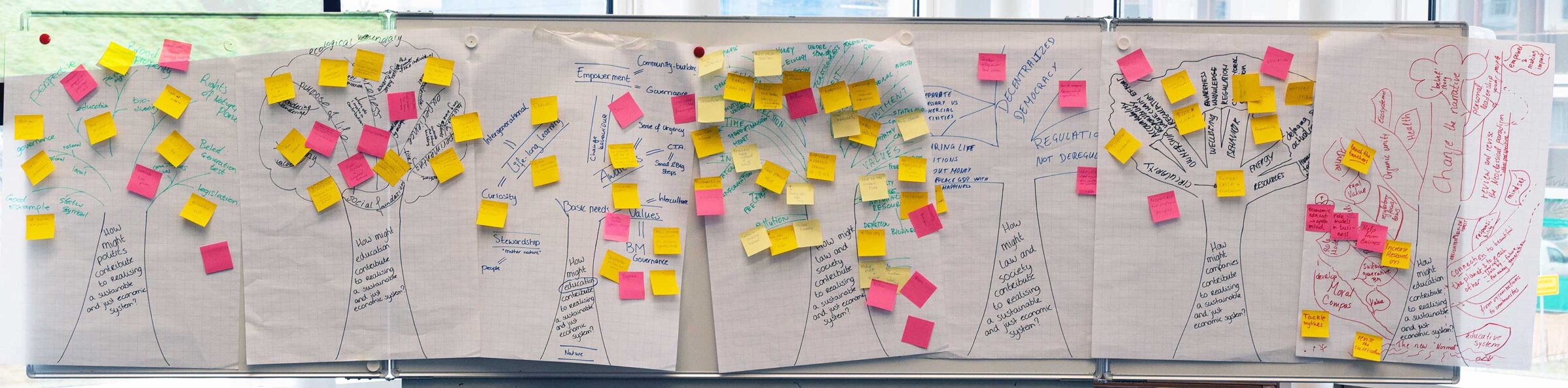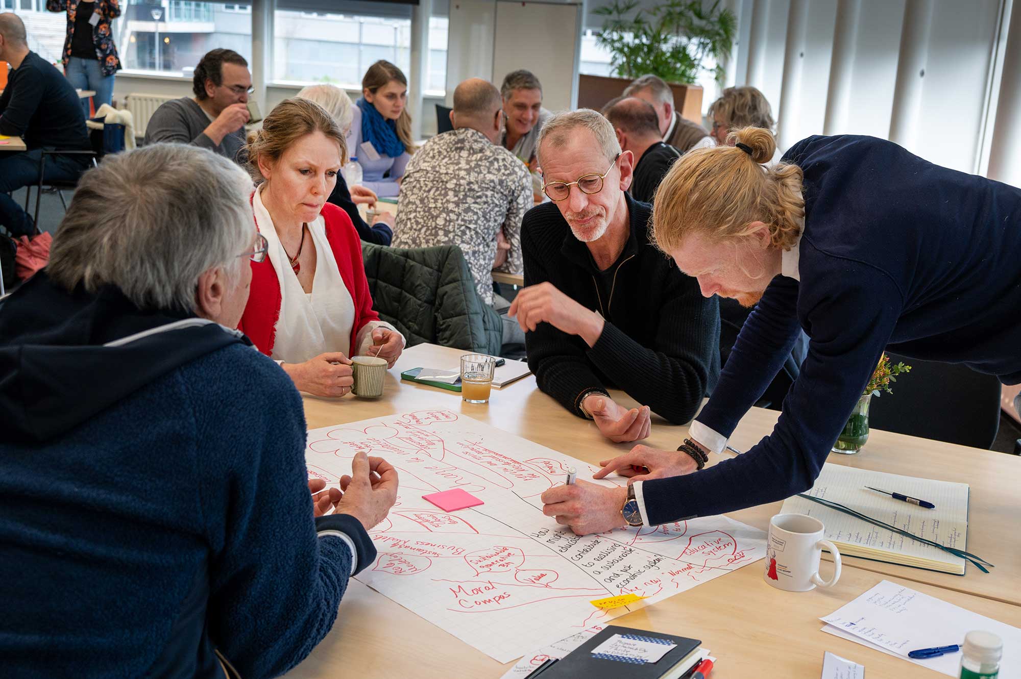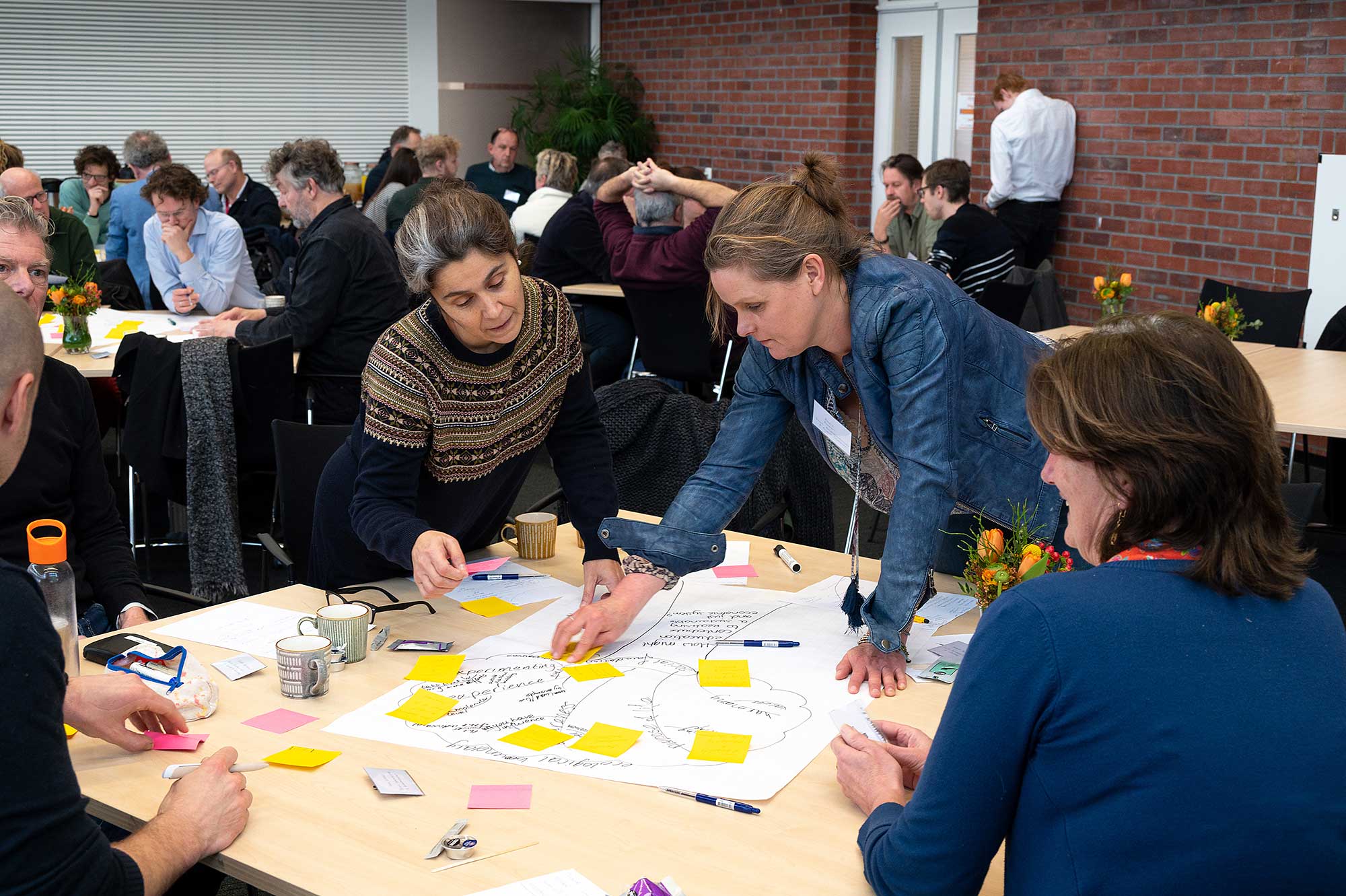 A final brainstorming session was held with a handful of forerunners in the field. It was intended to bring clarity to this issue. Led by communications professional Marrit Nijdam, teams from different disciplines were brought together: economists, education professionals, as well as lawyers and entrepreneurs. They worked out the key issues in order to find practical handles for the right path to degrowth.