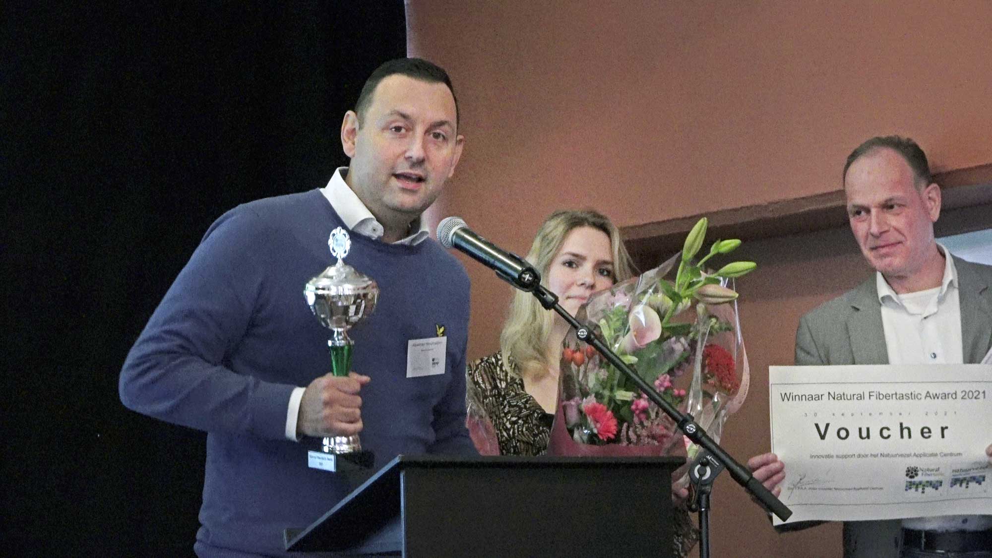Four companies were nominated for the NFT Award this year: Martens Keramiek from Oosterhout/Dinteloord with Kerloc 100% circular cladding, Circular Matters from Ghent with sheet material made from plant-based by-products, Poly Products from Werkendam with 3D printed circular biocomposite for maritime applications, developed in the Interreg 2 Seas project Seabiocomp and Cosun Beet Company with sugar packaging made from sugar beet pulp. The winner of the NFT Award 2021 was Martens Keramiek.