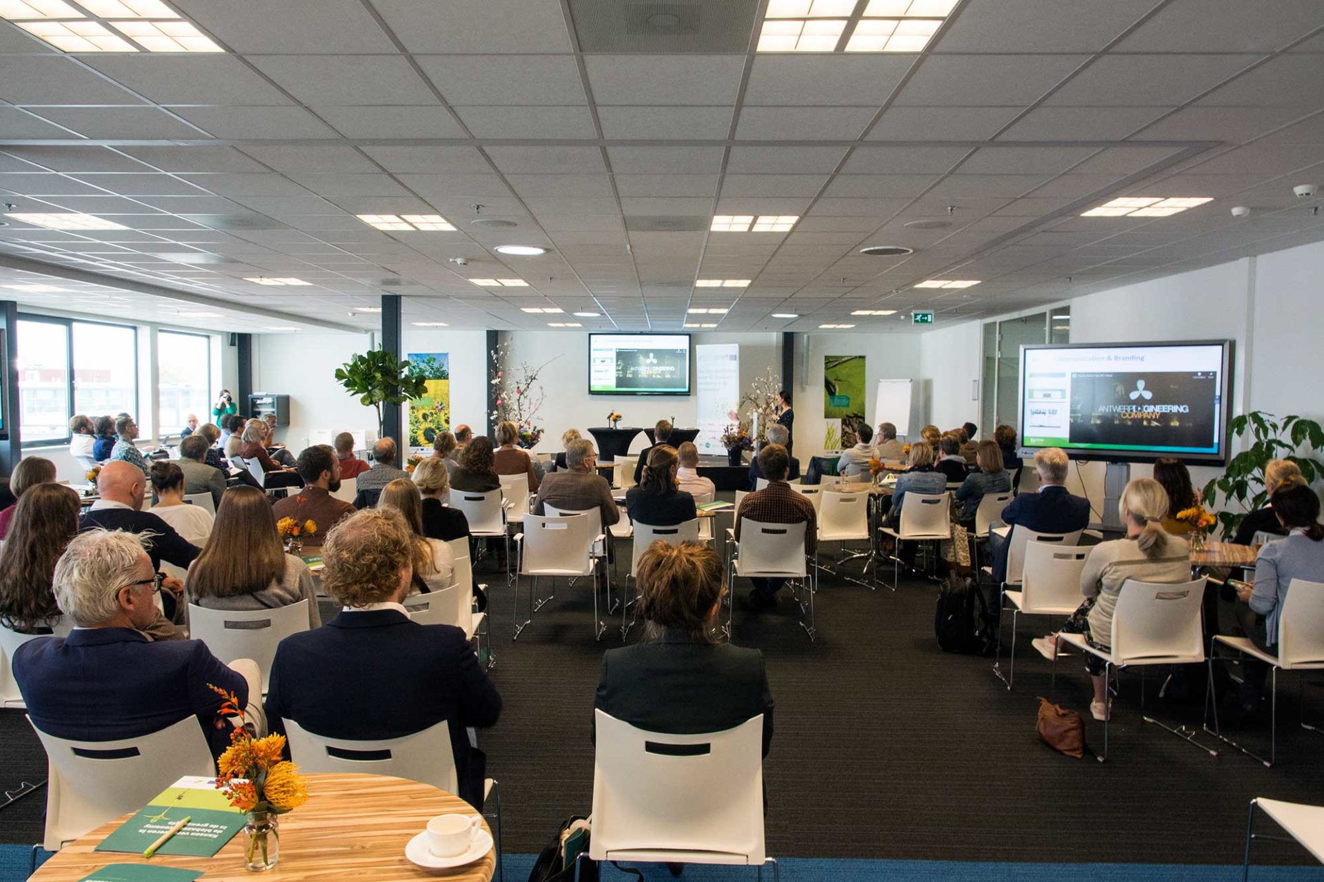 Karolien Vanbroekhoven (Research Manager Sustainable Chemistry at VITO) already indicated as much in her presentation on the Biorizon Shared Research Centre at the beginning of the conference. Without cooperation between the Flemish Institute for Technological Research (VITO), the Netherlands Organisation for Applied Scientific Research (TNO), the Energy Research Centre of the Netherlands (ECN) and the Green Chemistry Campus, this border-transcending research centre never would have got off the ground. By bringing together expertise in divergent areas, it was possible to quickly act in all areas, technological, as well as economic. This significantly accelerated knowledge development and various ongoing research projects within Biorizon, one by one, entered the upscaling phase.
