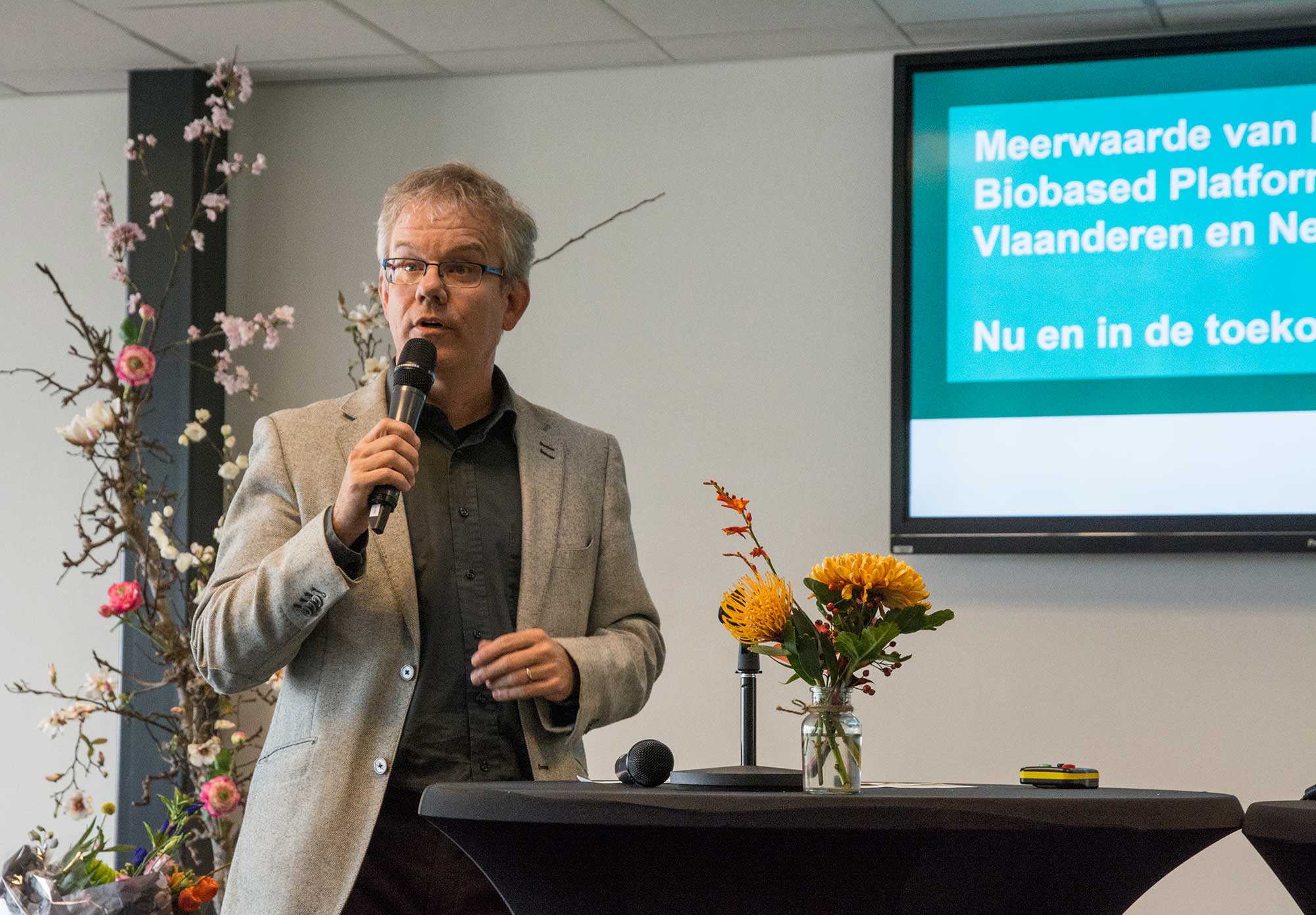 During a lively discussion, day chairman Florian Dirkse put various conjectures to a panel with diverse backgrounds: Nico Osse, Managing Director of the bioplastics manufacturer HemCell, Rop Zoetemeyer, Managing Director of the Biobased Delta Foundation, Bart Wuyts, CEO of the knowledge and innovation centre Blenders, Geert Mol, Project Manager Biobased at HZ/Centre of Expertise Biobased Economy and Hans Goossensen, Director Municipality of Dordrecht.