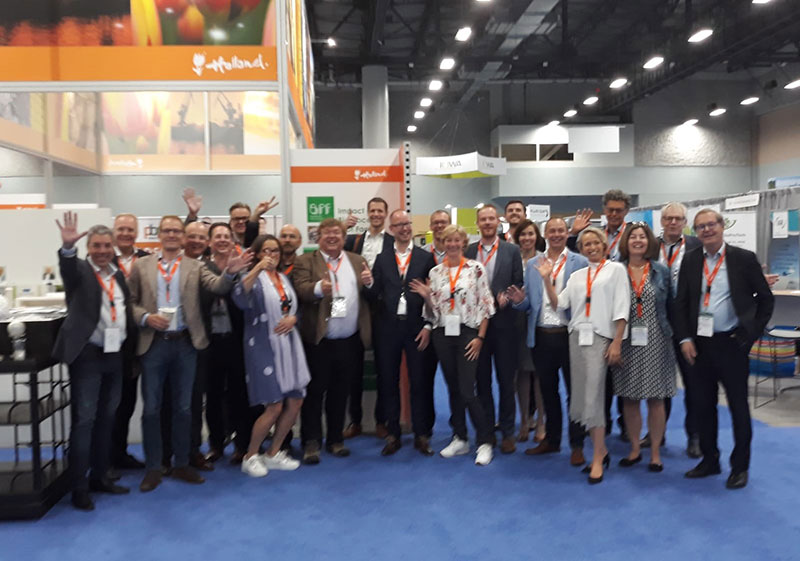 The Netherlands was conspicuously present in the trade fair’s exhibition hall in Iowa with its beautiful Holland Biotech Pavilion. The central portion of this pavilion, the Holland Lounge, was suitable for networking purposes and exploring partnering opportunities. All participants consequently used the Holland Lounge as their home base. Thanks to the information panels around the networking area, they were always easily visible. In addition, participants presented themselves through company videos and in the mission booklet.