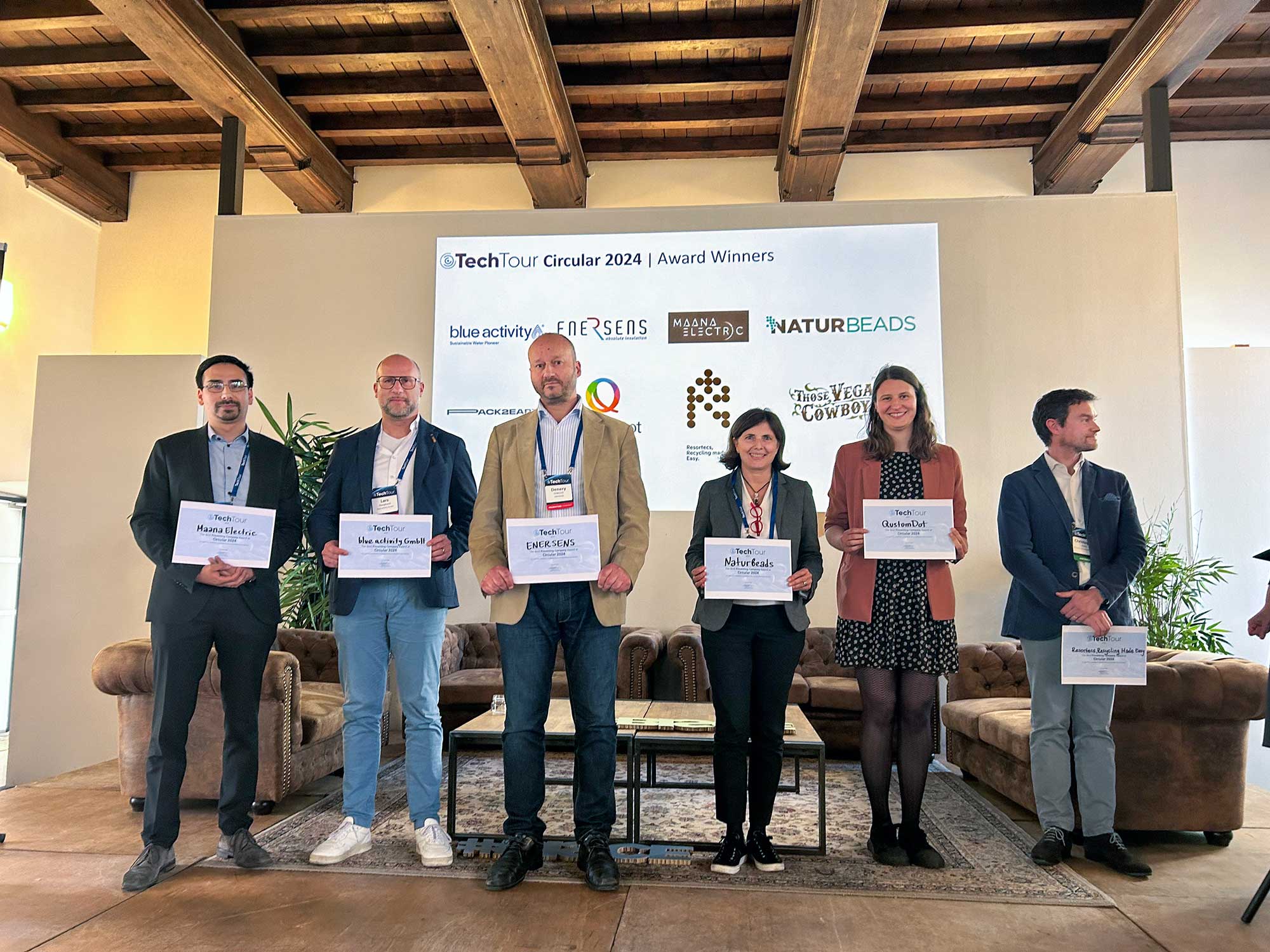 Expert juries assessed these and many other pitches from the Tech Tour event for their attractiveness to investors. From these, eight promising winners were selected: Blue Activity, ENERSENS, Maana Electric, NaturBeads, Pack2Earth, Qustom Dots, Resortecs – Recycling Made Easy and Those Vegan Cowboys.