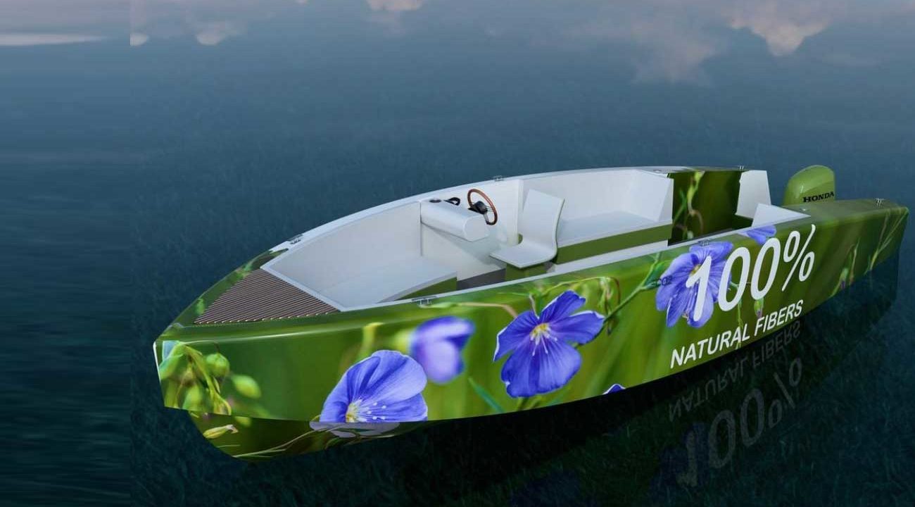 Thanks to the 100% natural fibres, the boat is CO2-neutral: 1 tonne of CO2 is stored for a long time during production. ECO2boats wants to buy back old boats to grind and melt the composite for reuse. The specially developed epoxy glue can even be reduced to natural fertiliser after a life cycle of fifty years.