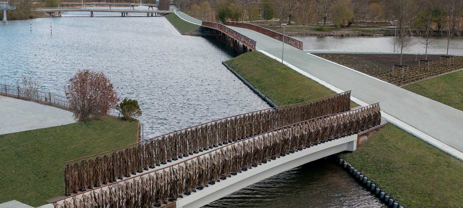 The first “Smart Circular Bridge” with a span of 15 metres has now been realised by an international consortium of 15 partners (including the Centre of Expertise Biobased Economy) led by Eindhoven University of Technology. The project team consists of 5 universities, 7 innovative companies and 3 municipalities. The first bridge will be opened on 22 April at the Floriade, the international horticultural exhibition in Almere, The Netherlands. In 2022 and 2023, two more Smart Circular bridges for pedestrians and cyclists will be realised in Ulm, Germany, and in Bergen op Zoom, the Netherlands. With this intensive cooperation between science, industry and local authorities, a multitude of innovations will be launched.