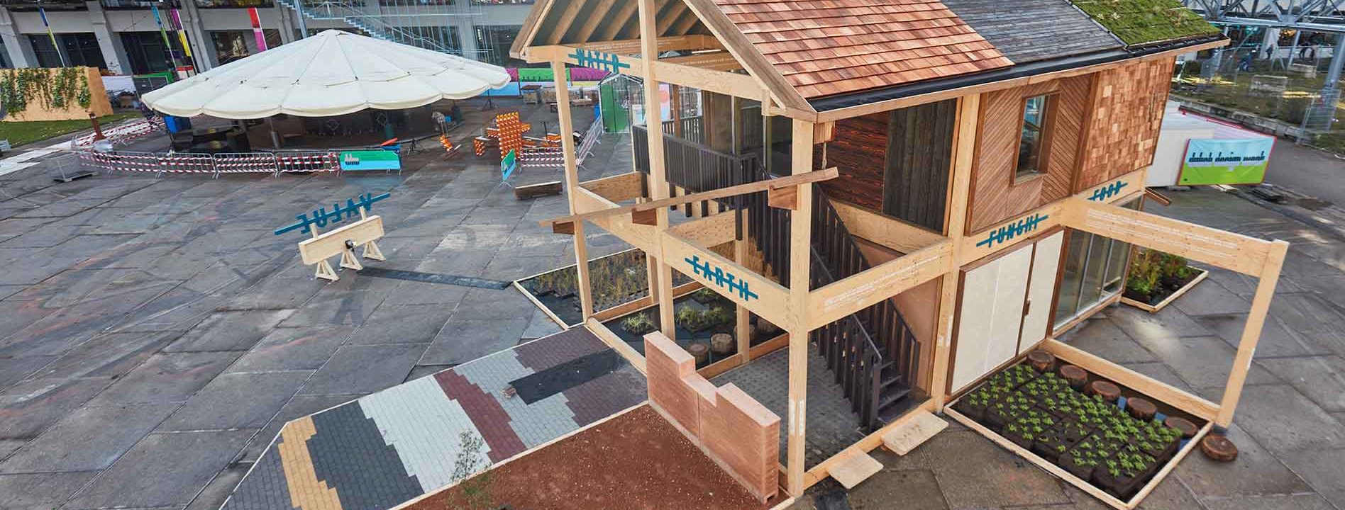 It is an iconic exhibition in the form of a house entirely made of biobased materials, circular construction methods and stories about the changing value chain it is part of. This life-size biobased house stimulates all the senses and shows the circular future.