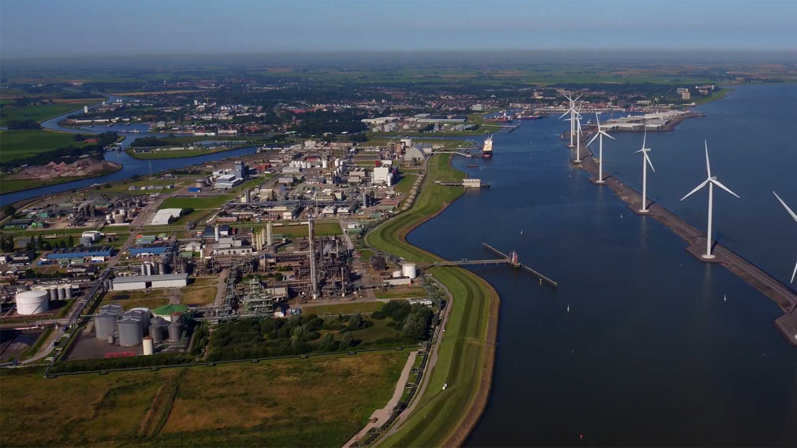 Aerial shot from the Chemport Europe video, showing Chemical Park Delfzijl