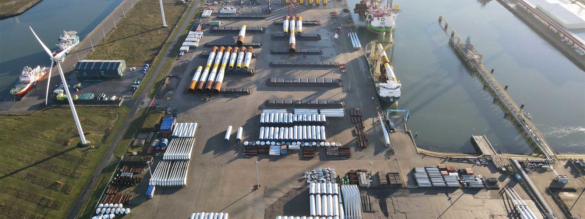 In a future pilot plant near the terminal, the raw materials will replace other materials such as hardwood and thus benefiting both the environment and the climate. Until then, the consortium will supply the rotor blades to Neocomp (Bremen, Germany), which makes cement from the recovered fibreglass and synthetic resin. A “one stop shop” system for the disposal of discarded rotor blades is already operational. The flows from land and sea will soon come together in Eemshaven, where rotor blades can also be repaired.