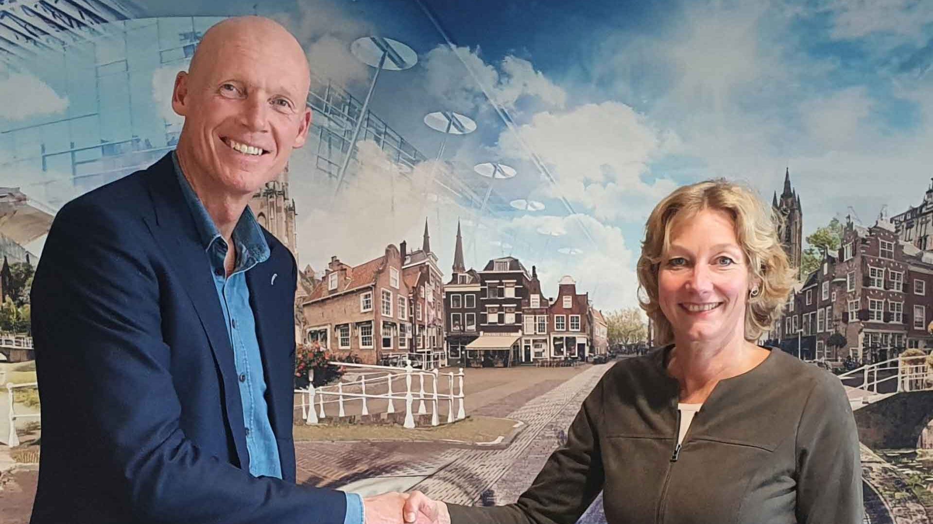 Picture ltr. Fabian van der Horst, managing director Inholland and Cindy Gerhardt, managing director Planet B.io